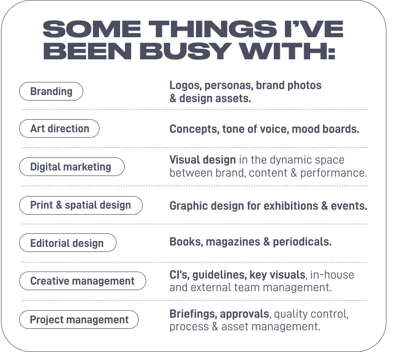 In my Berlin-based Brand and Communication role, I developed creative strategies and operational processes across marketing touchpoints through cross-team collaboration.